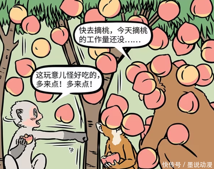 《非人哉》漫画版,孙悟空出生之后掌心策略,一开始不被花果山群猴接纳,不过其中有只小猴子,主动送桃子给他。孙悟空为此爱上桃子,还帮助小猴子完成工作量。因为孙悟空这么能干,随后被花果山猴群接纳。不过孙悟空不知道自己是谁,也不知道妈妈是谁?